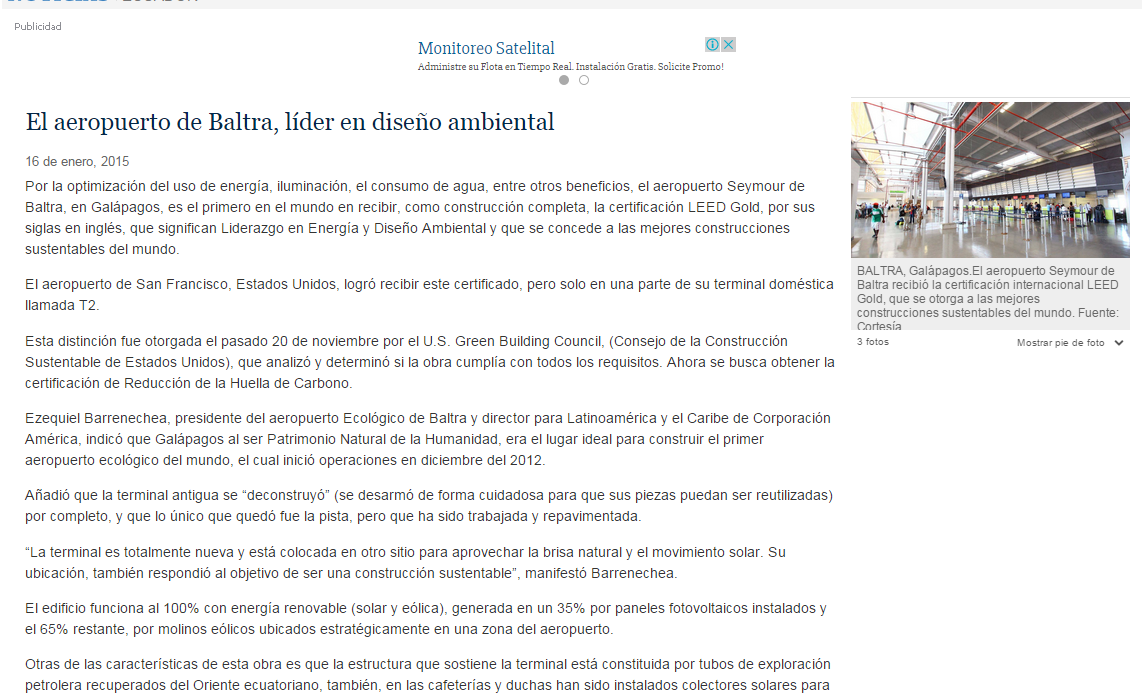 Prensa internacional nos reconoce como el Primer Aeropuerto Ecológico del Mundo.